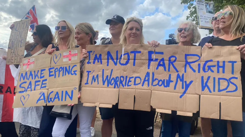 This horrific incident immediately triggered a series of protests outside The Bell Hotel in Epping, which has been housing asylum seekers for years. By Sunday, July 20th, this was the fourth such gathering in just nine days, with approximately 500 local residents converging on the hotel. These weren’t professional agitators; they were ordinary families, mothers, and fathers, holding signs declaring “Protect Our Kids”.